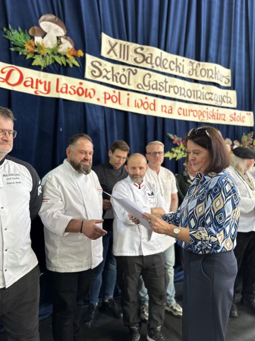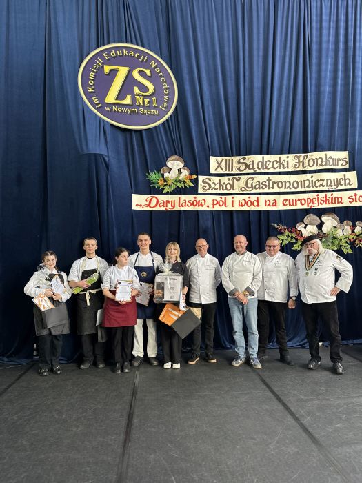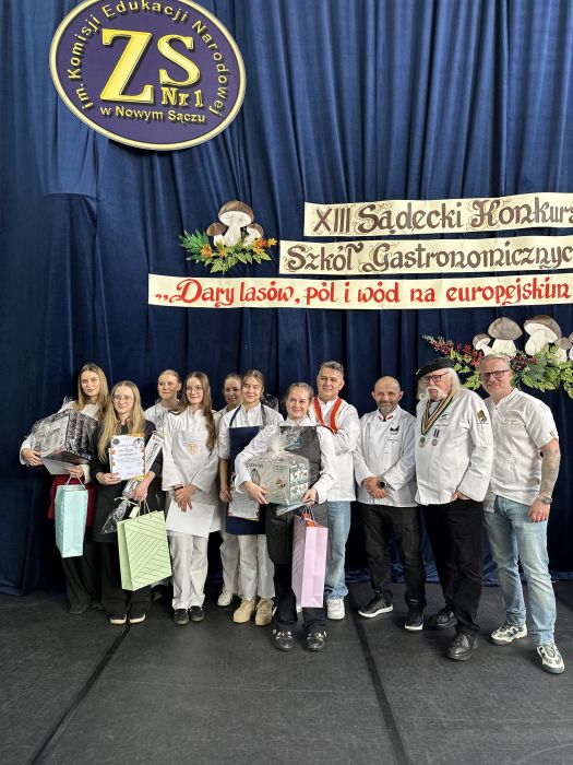 4 listopada 2025 roku w naszej szkole – Zespole Szkół nr 1 im. Komisji Edukacji Narodowej w Nowym Sączu – odbyła się XIII edycja Sądeckiego Konkursu Szkół Gastronomicznych pod hasłem „Dary lasów, pól i wód na europejskim stole”.
