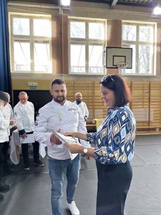 Chef Scheller przewodniczył obradom jury, dzieląc się swoją ogromną wiedzą i doświadczeniem z uczestnikami. Jego obecność była dla nas inspiracją oraz dowodem, że nasza szkoła należy do czołówki ośrodków edukacji gastronomicznej w regionie!
